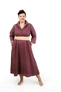 Vestido largo monocolor ligeramente entallado con cierre de botones hasta la cintura. Modelo con cuello camisero o chino, mangas 3/4 y cinturón ancho de jugosos colores frutales. Así resaltarás todos los encantos de tu figura.